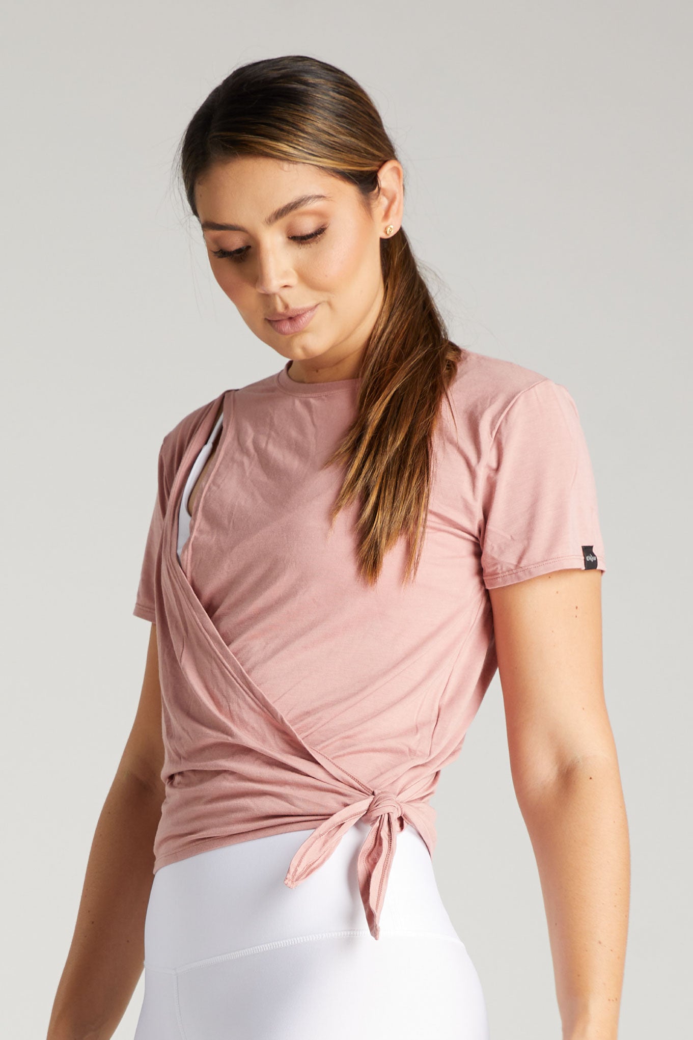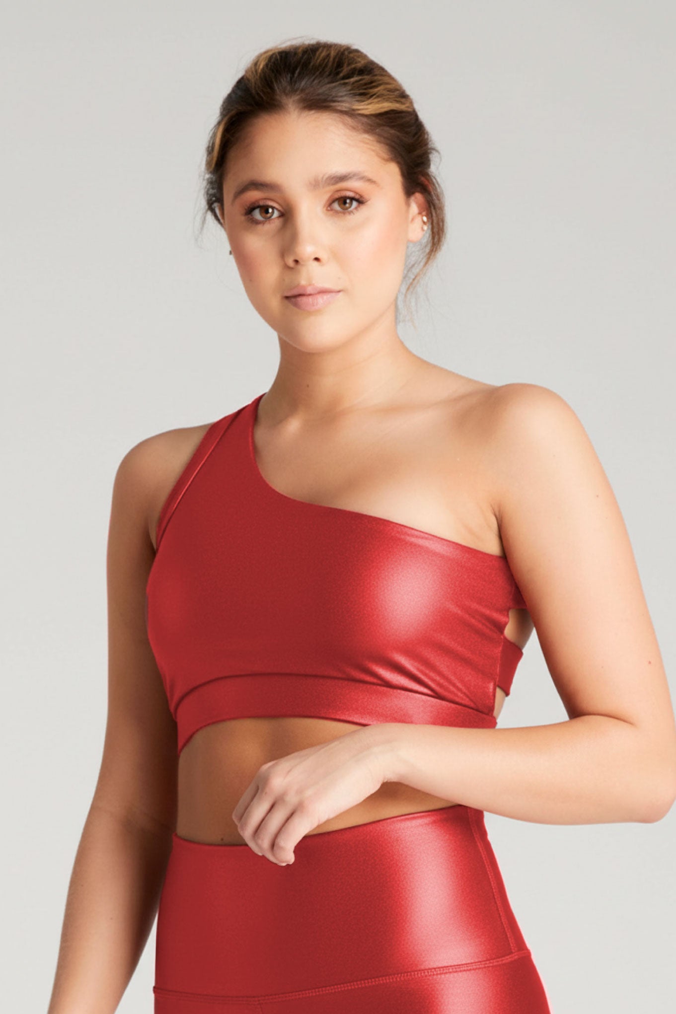 La modelo mide 1.78 cm y usa una talla S-M.